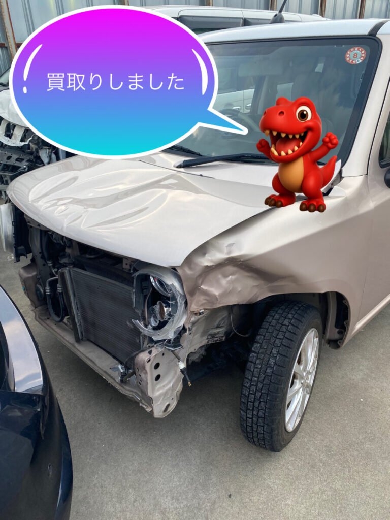左前部分は大きく損傷していましたが、エアバッグ未展開で内部へのダメージが軽微だったことや、リサイクル可能な部品が多く残っていたため、しっかり査定し3万円での買取となりました。